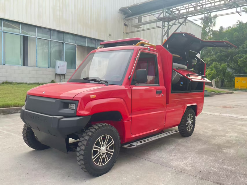 கச்சிதமான மற்றும் நெகிழ்வான, அவர் ரன் கம்யூனிட்டி மினி ஃபயர் டிரக் குறுகிய நிலத்தடி கேரேஜ்கள், சமூக சாலைகள் மற்றும் ஷாப்பிங் மால் பத்திகளை எளிதில் செல்லலாம், பெரிய தீயணைப்பு வீரர்களால் செய்ய முடியாத தீ காட்சிகளை அடையலாம். அதிக செயல்திறன் கொண்ட மின்சார நீர் மூடுபனி அமைப்பு பொருத்தப்பட்டிருக்கும், இது விரைவாக பேட்டரி பொதிகளை குளிர்விக்கலாம், வெப்ப ஓடிப்போன அபாயத்தைக் குறைக்கலாம், மேலும் தீயை அணைக்கும்போது தீயை அணைக்கலாம், அதே நேரத்தில் அணைக்கப்படும் முகவர்களின் பயன்பாட்டைக் குறைத்து, இரண்டாம் நிலை மாசுபாட்டைத் தவிர்க்கலாம்.